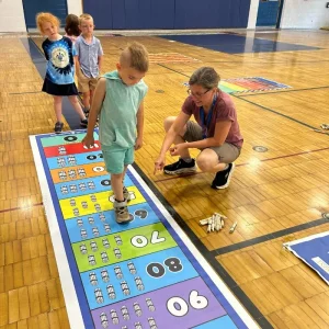 Our hands-on math materials are designed to make learning engaging for students. Math & Movement’s kinesthetic math manipulatives allow students to explore concepts by moving their bodies. These math learning tools, including floor mats and stickers, transform abstract concepts into tangible experiences.