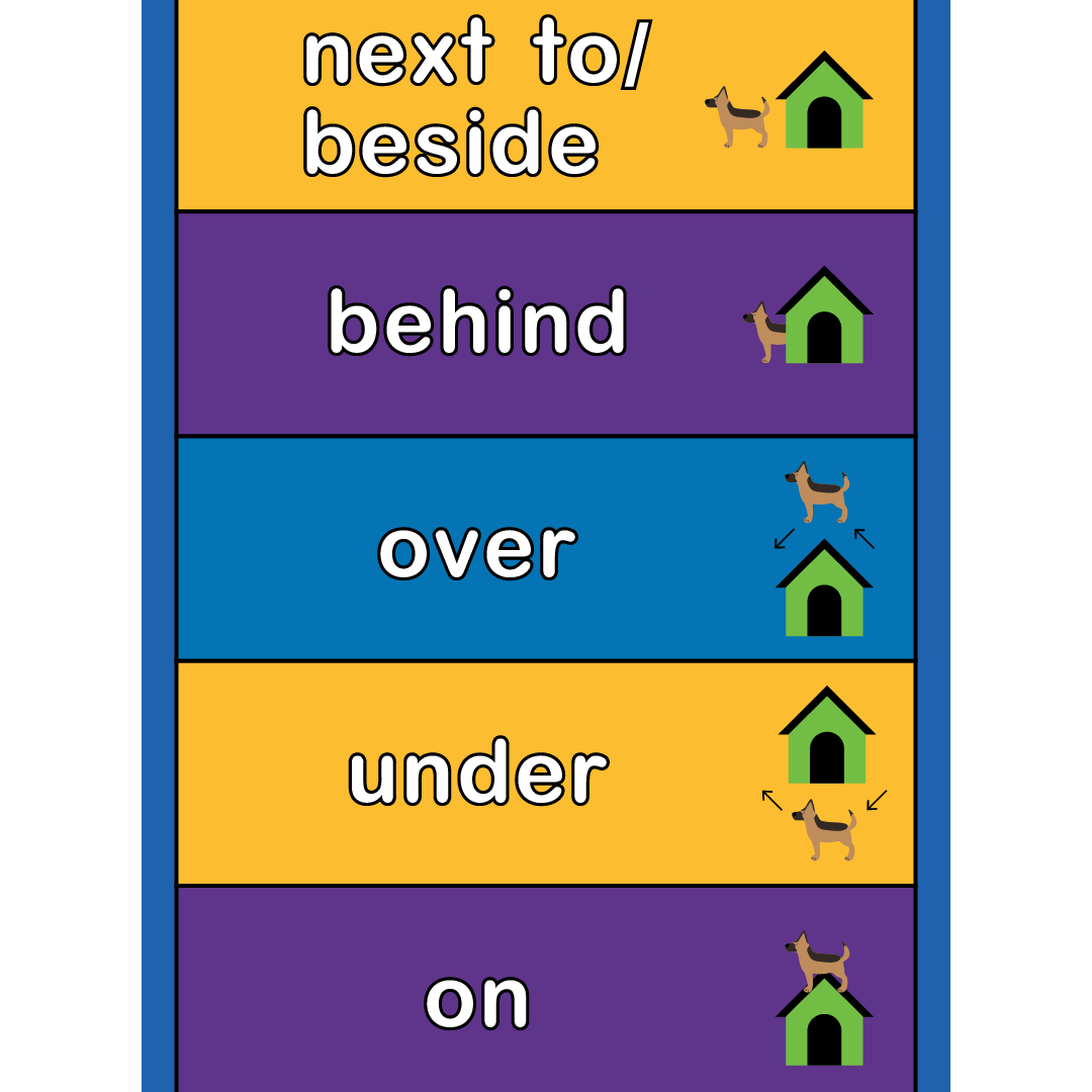 This floor mat helps students develop an understanding of positional words by connecting language to movement. Clear, supportive visuals provide concrete examples of each position, aiding comprehension as students hop and move through each space. Together, the movement and visuals strengthen vocabulary, oral language, and early sentence development through active learning.
