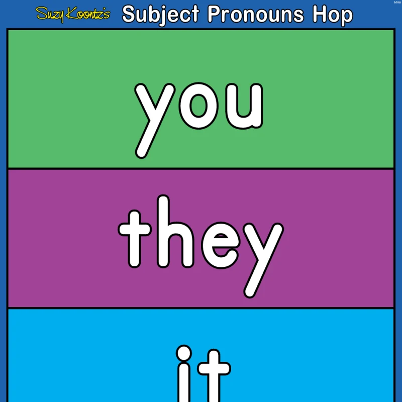 The Subject Pronouns Hop will helps students learn about subject pronouns using movement-based activities! Each colorful block highlights a key subject pronoun: I, we, he, she, it, they and you. This helps students strengthen their understanding of how these words take the place of nouns that perform the action in a sentence.