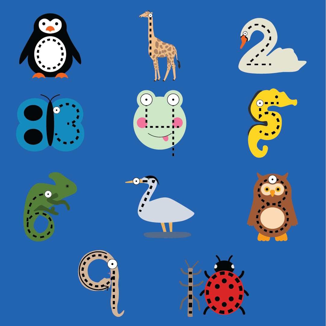 This product includes 22 worksheets. They cover numerals 0-10 with dashed lines on animal graphics: