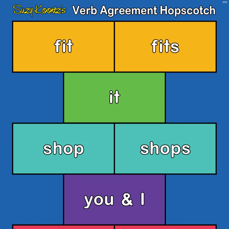 The Verb Agreement Hopscotch mat helps students practice matching subjects with the correct verb forms. Students hop, read, and choose the correct verb to reinforce subject–verb agreement.